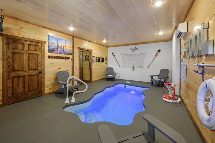 NEW*FLIP FLOP LODGE*HOT TUB*HEATED INDOOR POOL*BBQ*GAMES*5MIN TO PARKWAY*EASY ROAD!