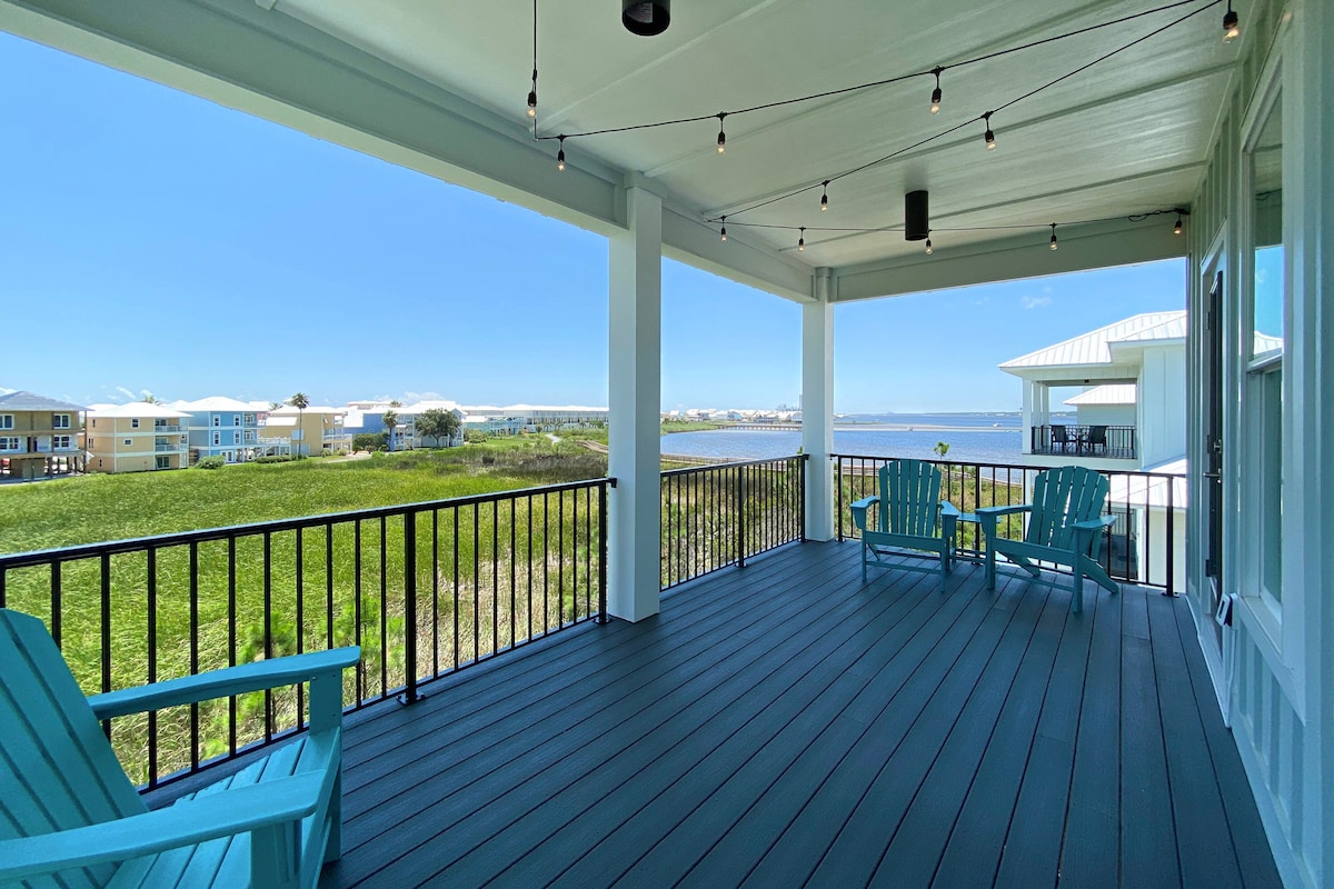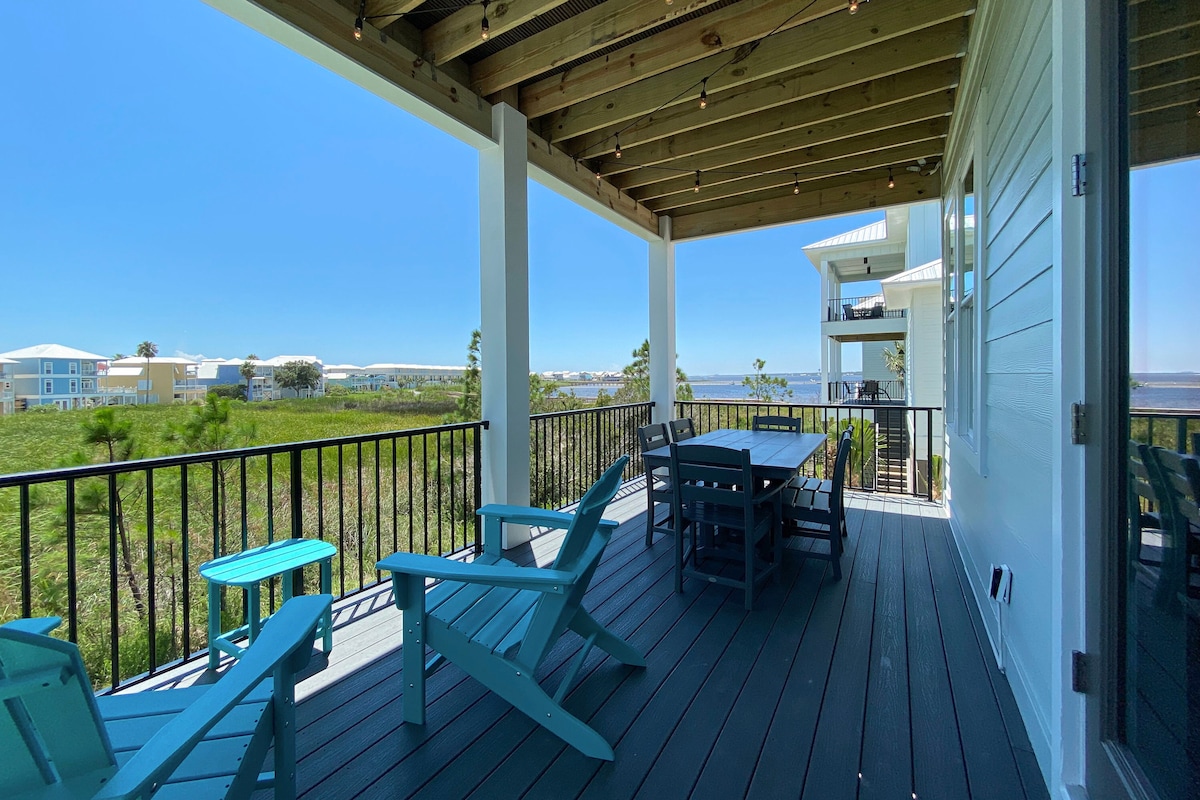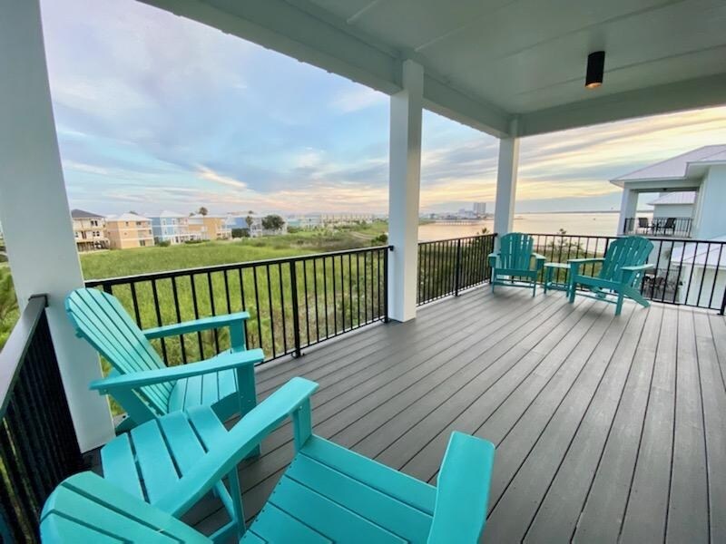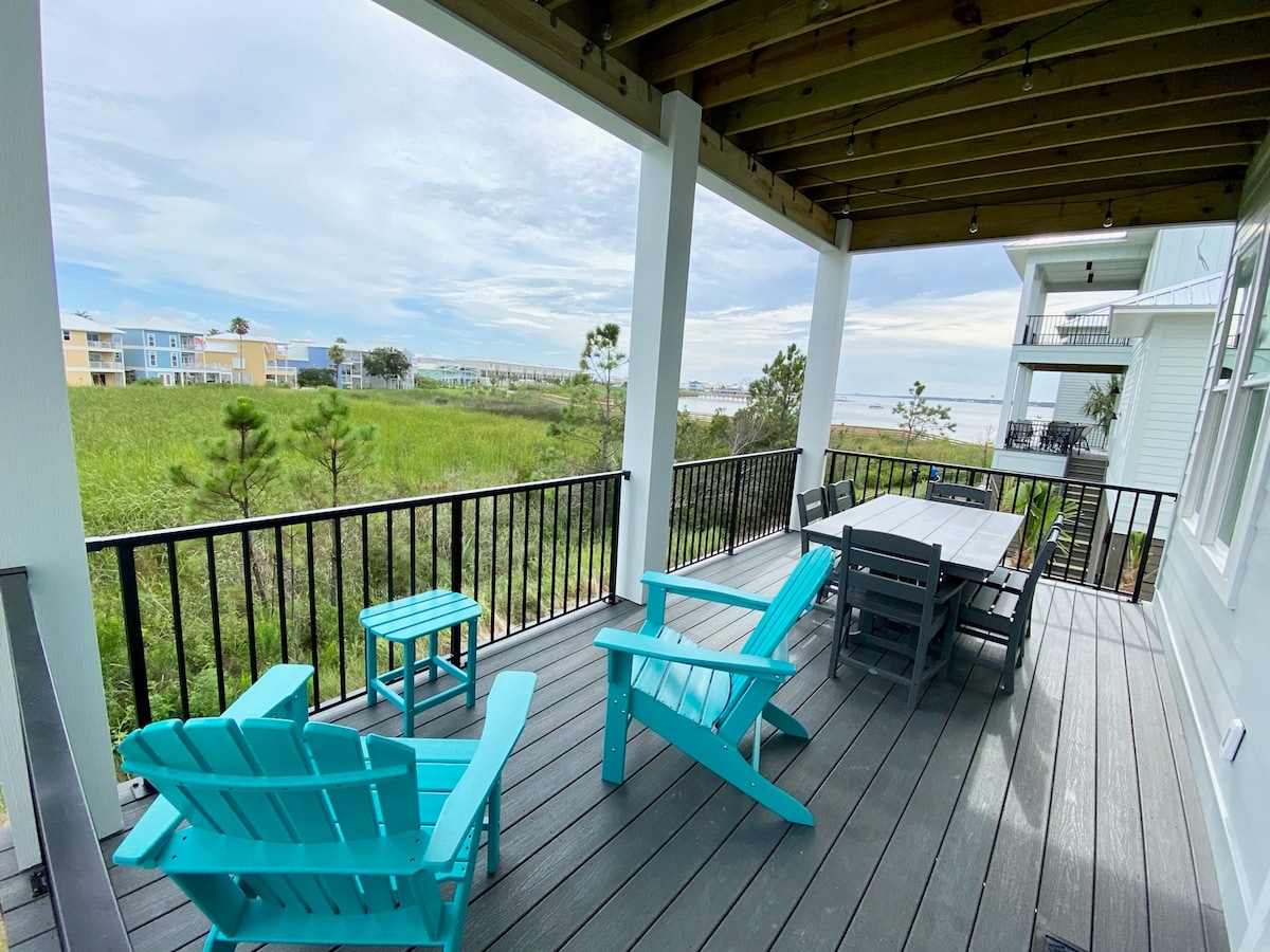 Top floor patio has 4 additional Adirondack chairs with 2 end tables and has the best view of the lagoon and all year round amazing sunset views.