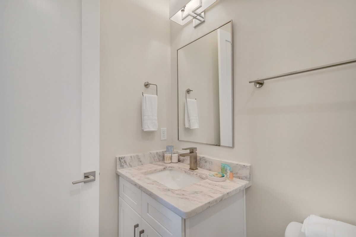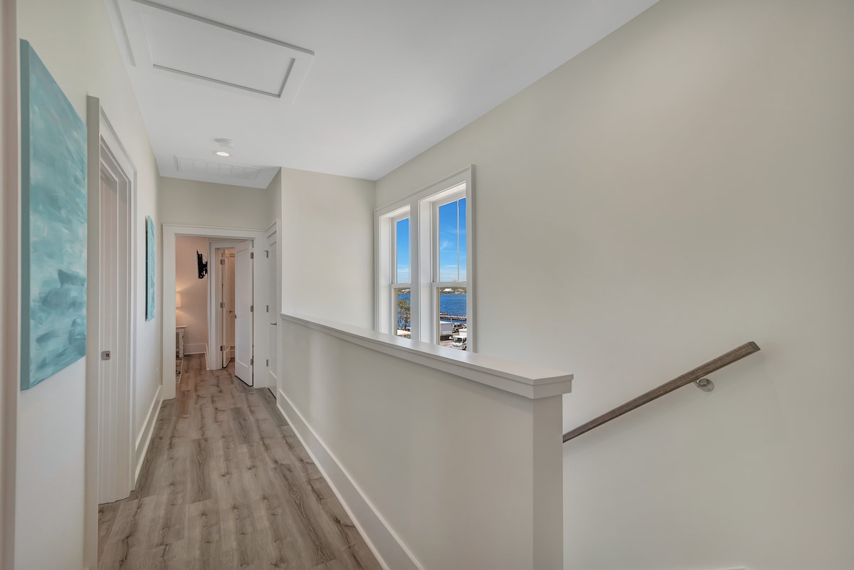 Upstairs are the 3 guest bedrooms. All bedrooms have wall-mounted smart HDTVs and bathroom access. One bedroom has a private bedroom with a full bathroom and while the other 2 guest rooms share a Full bathroom. Two bedrooms have access to the deck overlooking the lagoon again.