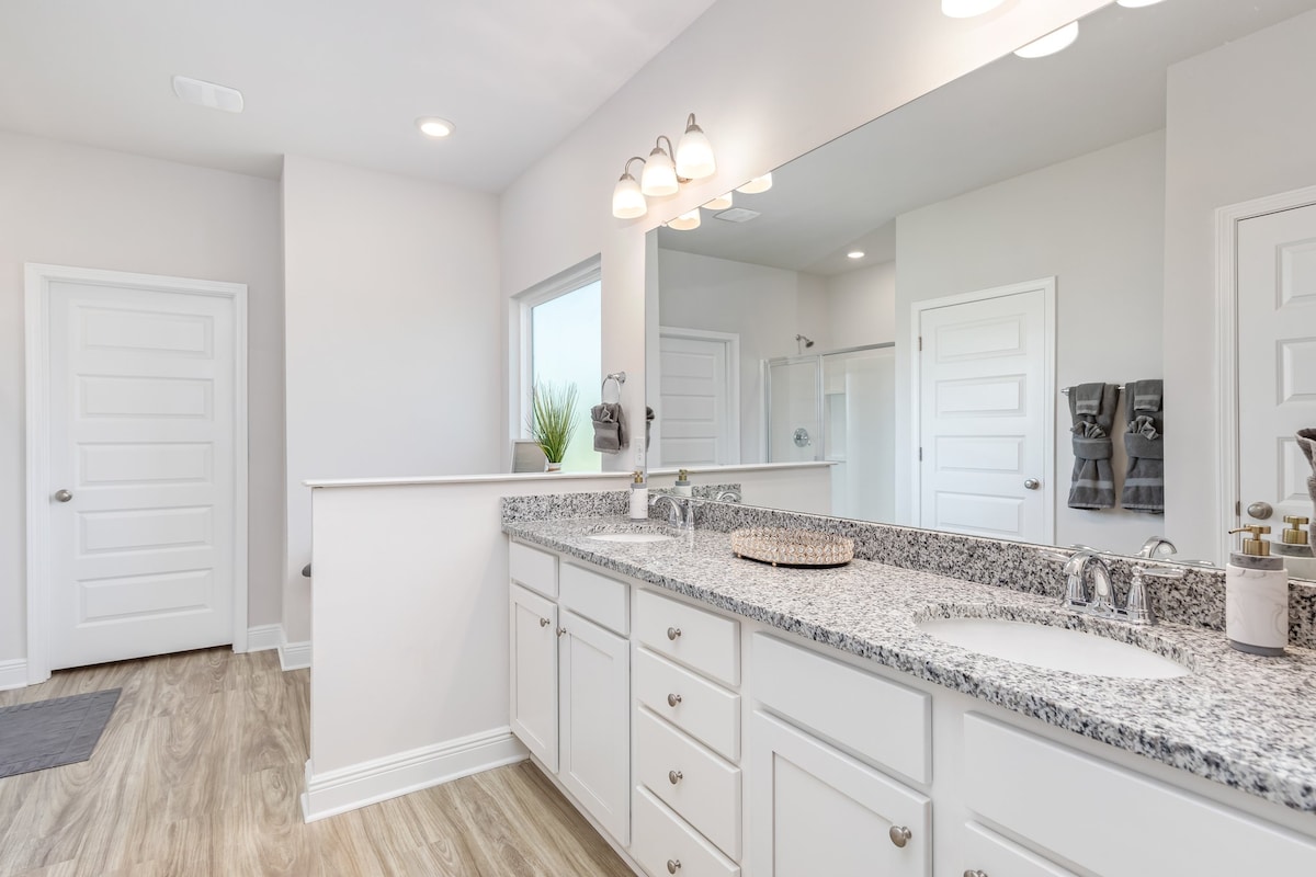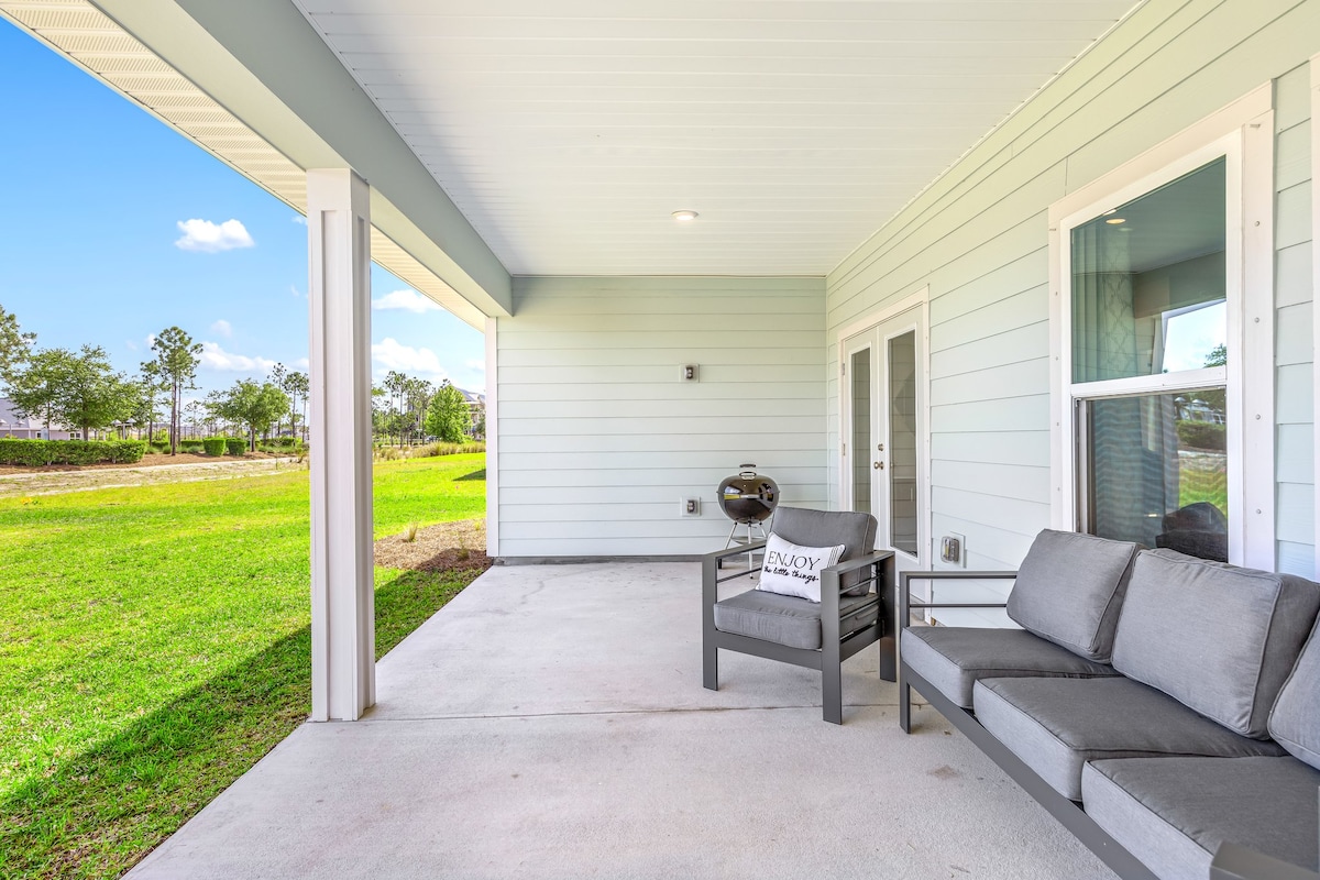 Mystic Pearl has a spacious two-car garage as well as a open study towards the front of the home that can be used as an office space if needed. A gourmet kitchen is included and the large family room has spectacular trey ceilings as well as a gorgeous island. The large master suite has a large walk in closet and access to the back porch with comfortable patio seating and charcoal BBQ grill.