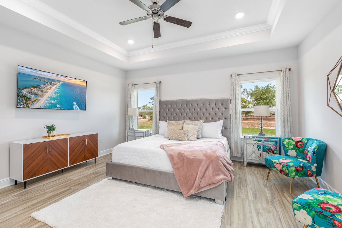 Parking is available onsite but be mindful, boats, trailers, and RVs are not allowed. The large community pool offers a zero-entry splash pad for kids, plenty of lounge chairs, as well a playground. In addition, there are several beach access points with 3.5 miles of boardwalks; perfect for exercise such as walking, biking, running, and even nature photography or you can visit the city center which is home to Fit as a Fiddle for yoga and weights. We highly recommend going to The View on 98 in the city center to cook your catch or have a sunset cocktail looking over the ocean. Windmark Beach has all the amenities to provide a memorable vacation.